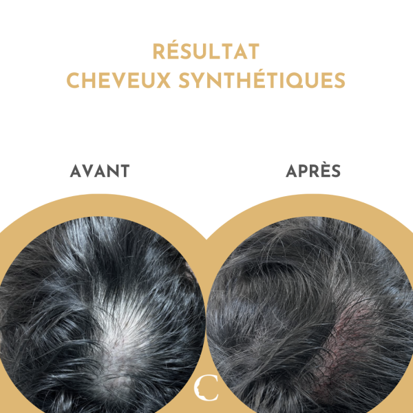 Notre méthode d'implantation de fibres synthétiques permet d'améliorer l'apparence des cheveux. Elle consiste à implanter des cheveux synthétiques dans les zones du cuir chevelu affectées par la perte de cheveux ou la calvitie, pour donner l'apparence de cheveux plus épais et plus volumineux.